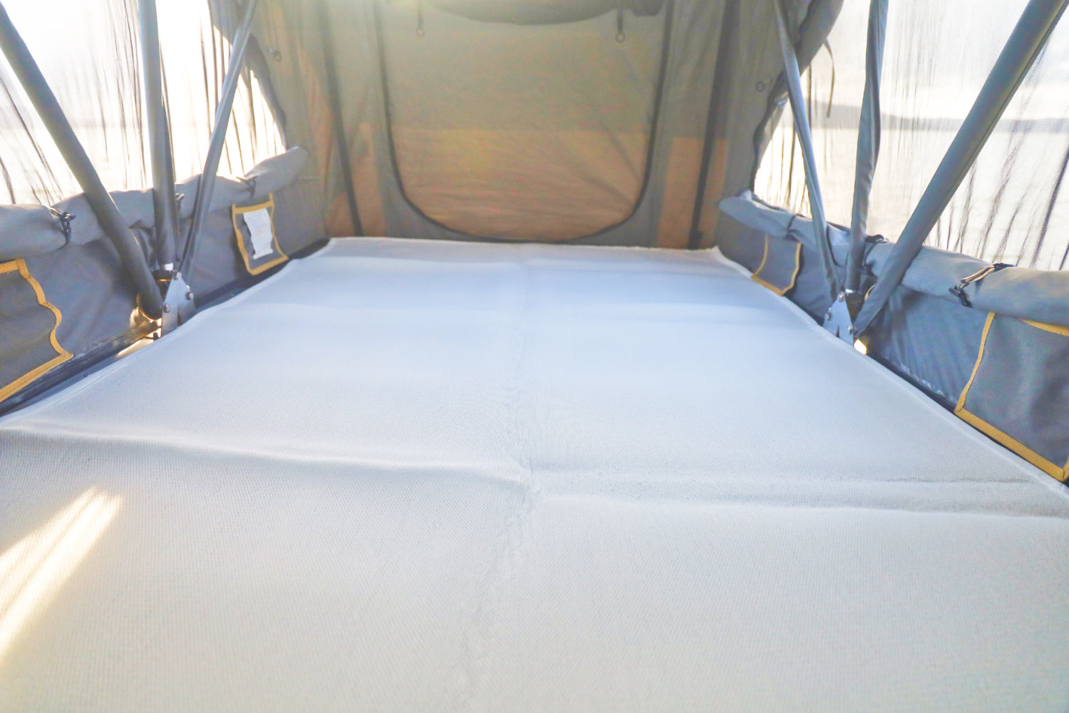 - Store bedding inside tent while traveling (freeing up room in the vehicle)