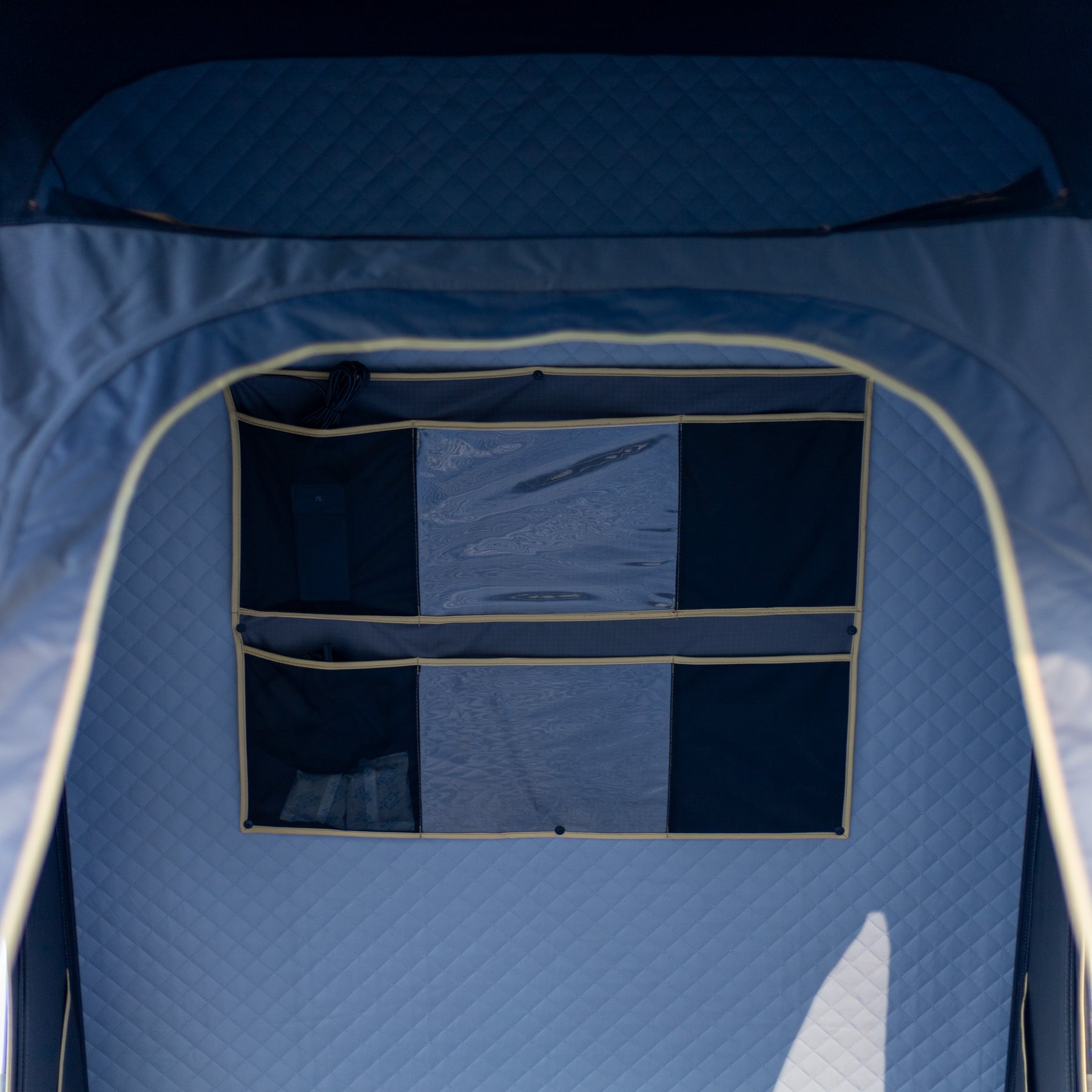 - large hinges, enabling all bedding (pillows, duvet and sheets) to be floded up into the tent.