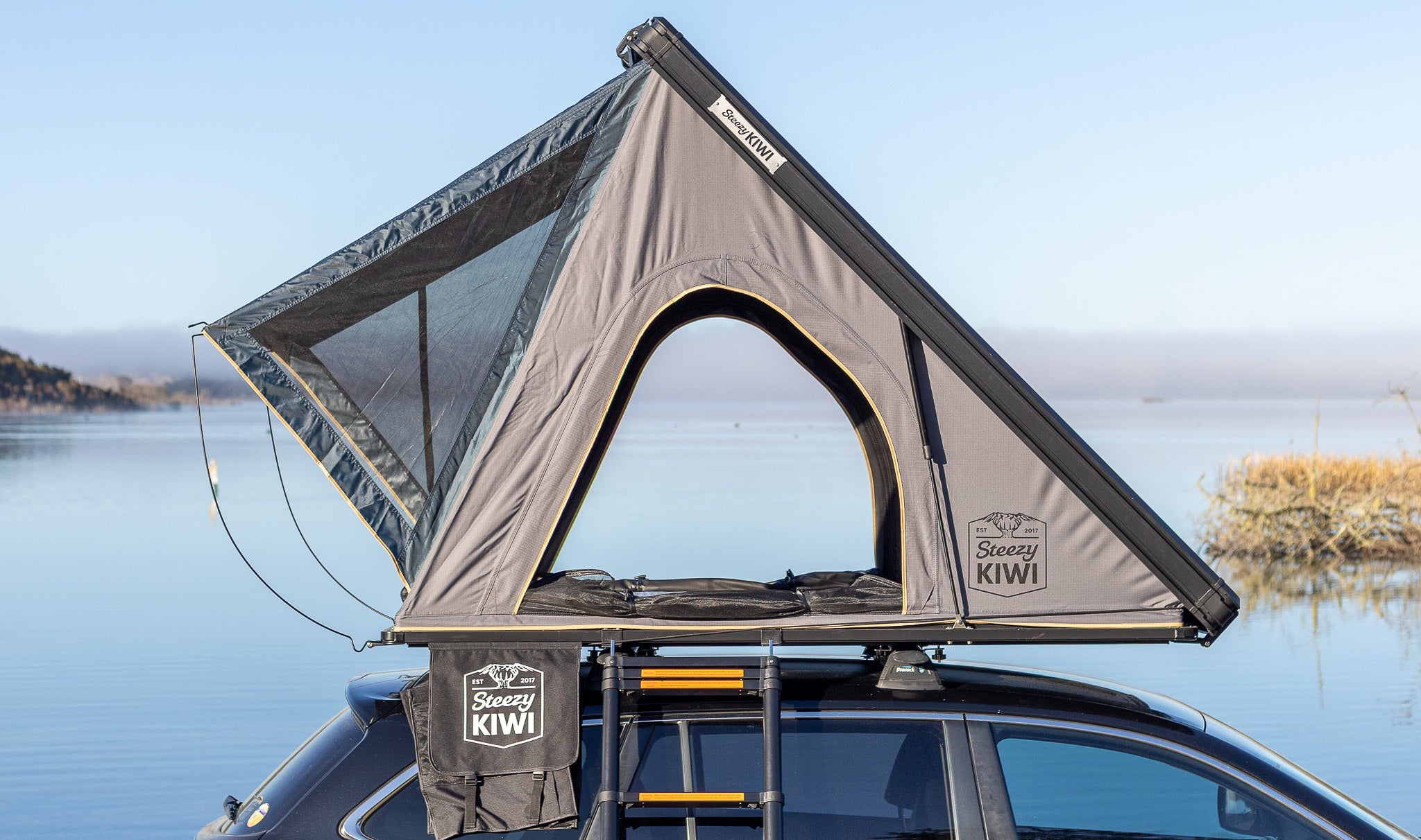 - 12cm pack down - making them the most compact, streamline and fuel efficient rooftop tent in New Zealand, enabling you to keep in on your roof more often, and fit into smaller sheds/garages.