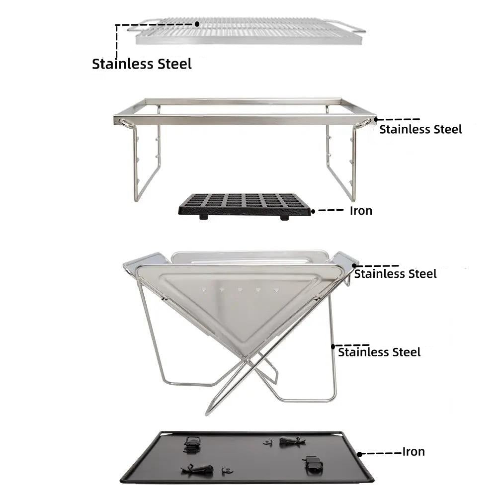 Made from solid stainless steel (304 Food grade grill and 201 body), this fire pit and grill is built to take the heat and keep going. Plus, it comes with a sturdy carry bag so you’re always ready to hit the road.